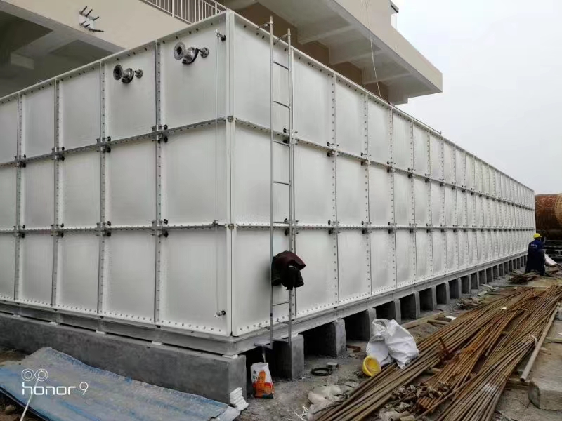 玻璃鋼水箱組件是使用模壓小塊,在施工現場組裝成一個大型水箱。要用角鋼固定在外面,角鋼模型由水箱構成,頂部放置玻璃鋼板,然后在現場添加幾層方格布或毛氈以消除裂縫。