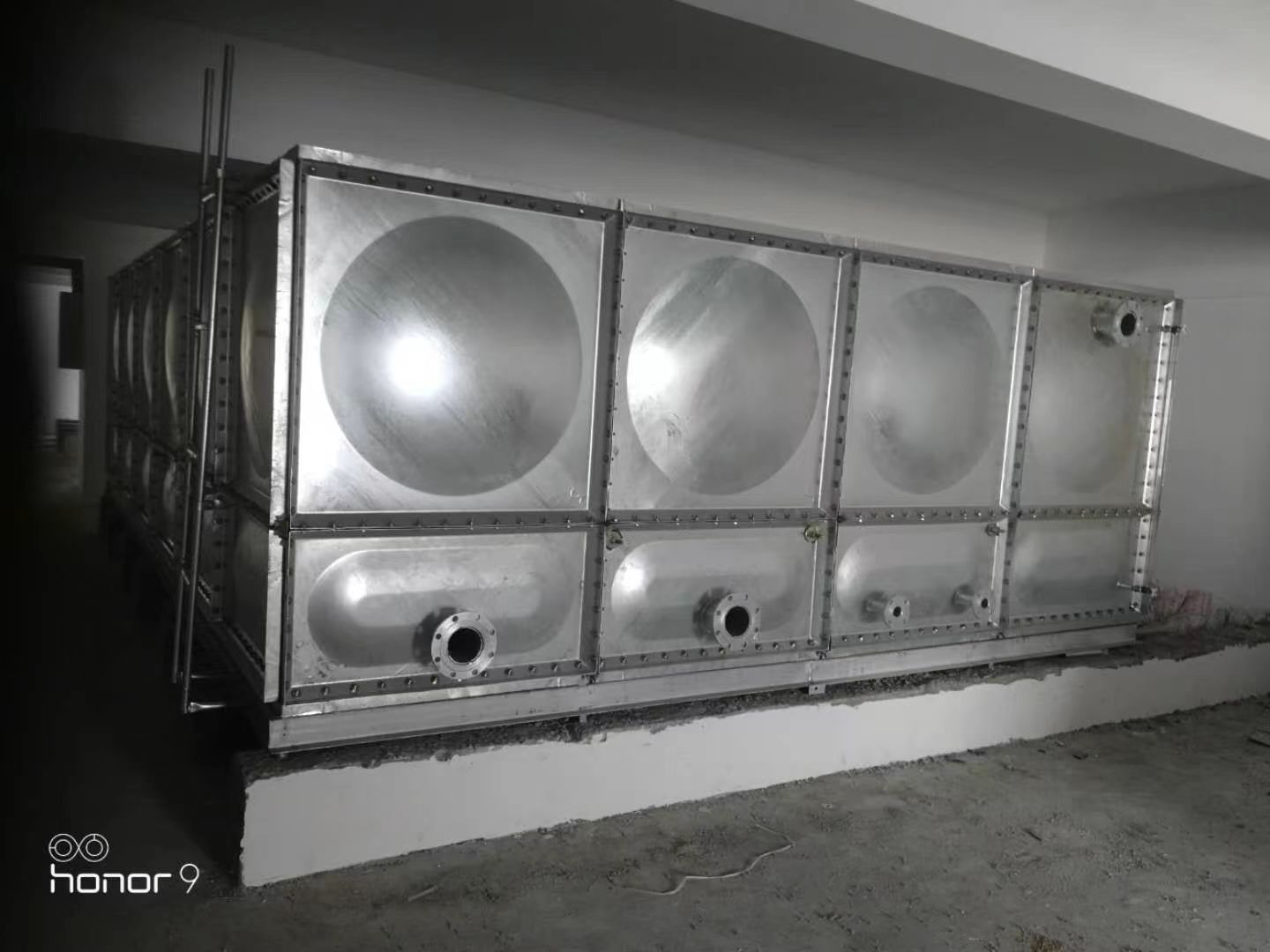 2、鍍鋅水箱的安裝、施工和驗(yàn)收:專業(yè)焊工現(xiàn)場氬弧焊接。 施工現(xiàn)場有標(biāo)準(zhǔn)電源。水箱四周有≥500mm的檢修空間。外觀檢驗(yàn)無銹蝕、無污染。注滿水二十四小時(shí)內(nèi),箱體無明顯變形,無滲漏為合格。